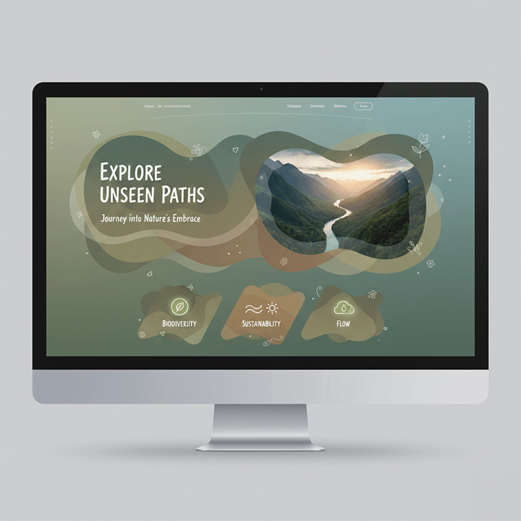 Why it works: fluid layouts guide the eye gently, create emotional comfort, and help brands feel more expressive. Broken grids, biomorphic shapes, and soft gradients replace box-heavy designs, offering a fresh, less cluttered experience that stands out while still feeling intuitive.